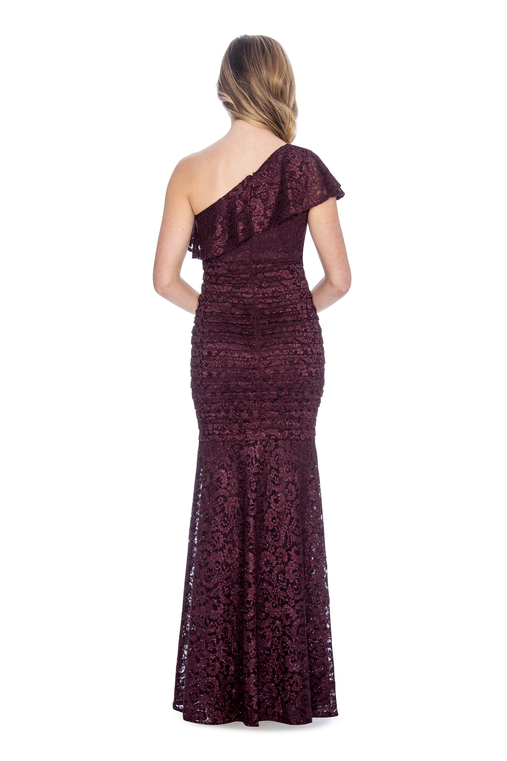One shoulder, lace, ruffle, long dress